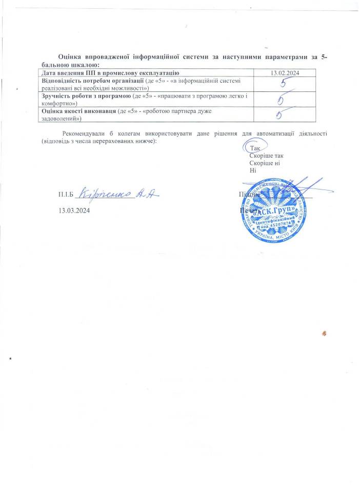 Рекомендували б колегам використовувати дане рішення для автоматизації діяльності (відповідь з числа перерахованих нижче):