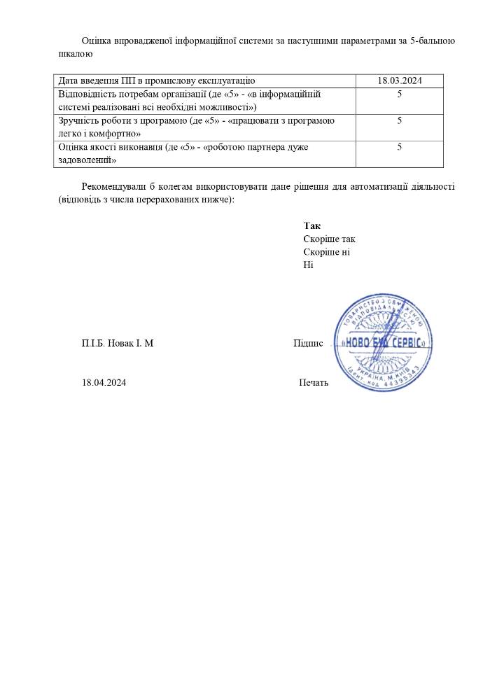 Фірму з впровадження системи автоматизації ми обирали з огляду на досвід та успішні приклади впровадження схожих програмних продуктів, тому ми звернулися до фірми ТОВ «СОФТКОМ ГРУП», яка максимально відповідала вимогам по впровадженню такої системи.