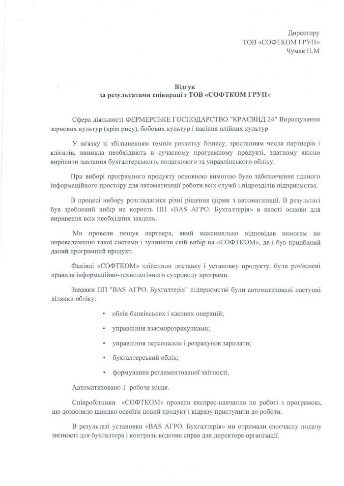 за результатами співпраці з ТОВ «СОФТКОМ ГРУП»