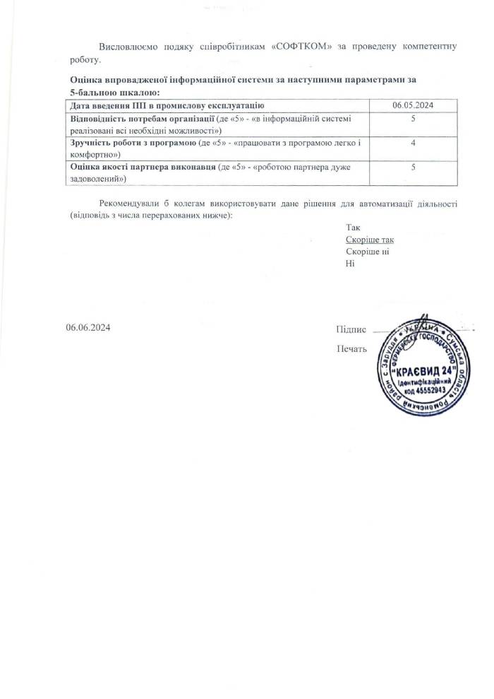 Висловлюємо подяку співробітникам «СОФТКОМ» за проведену компетентну роботу.
