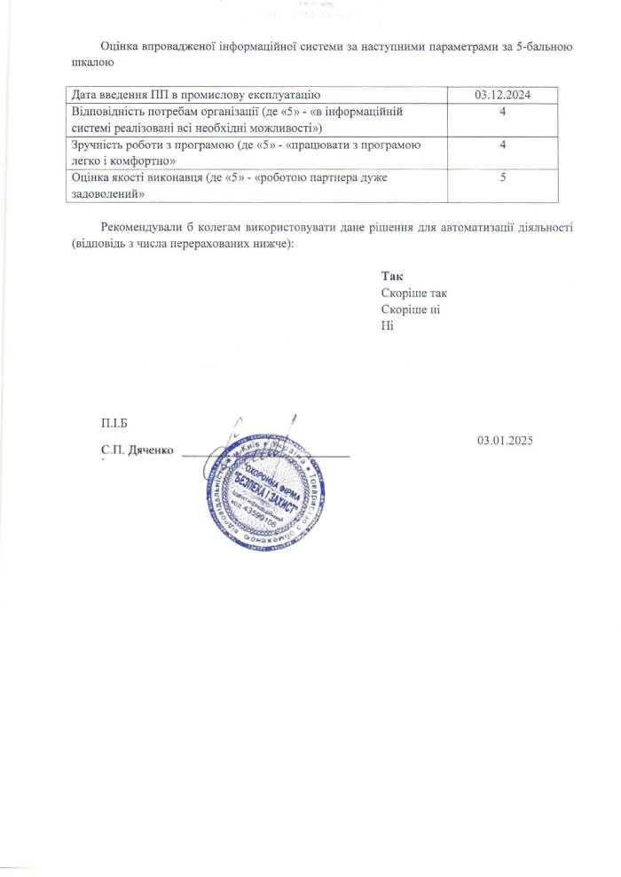 Оцінка впровадженої інформаційної системи за наступними параметрами за 5-бальною шкалою: