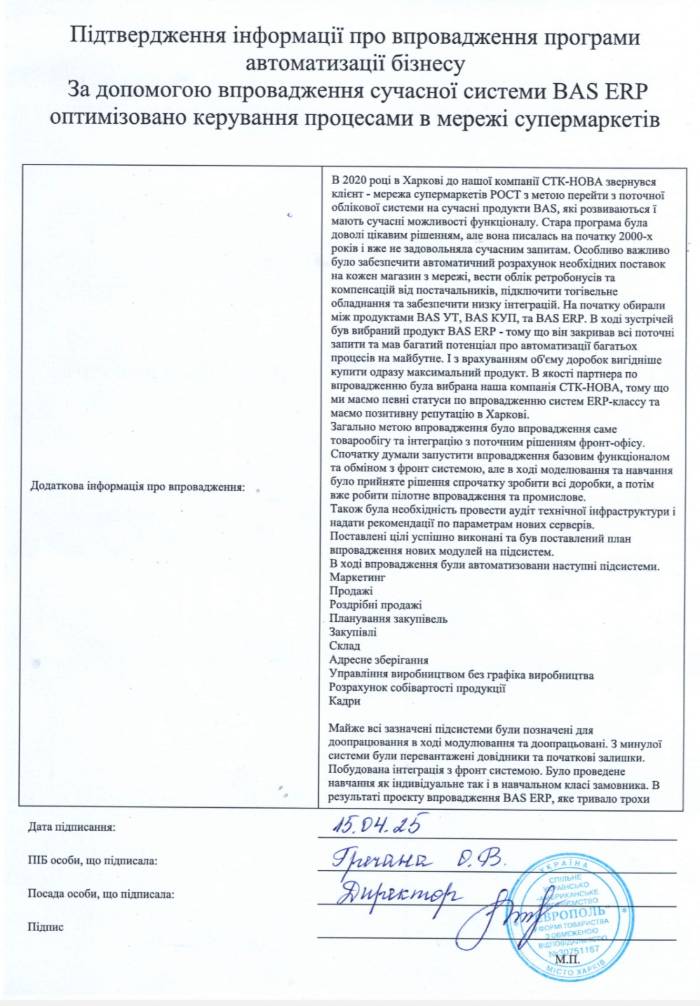 За допомогою впровадження сучасної системи BAS ERP оптимізовано керування процесами в мережі супермаркетів