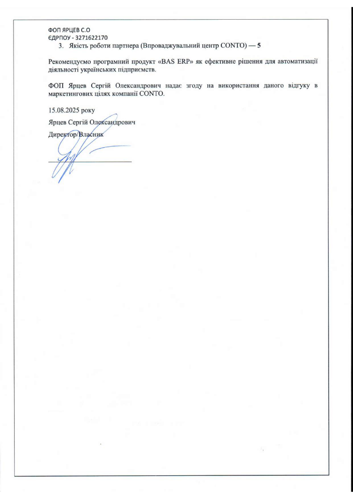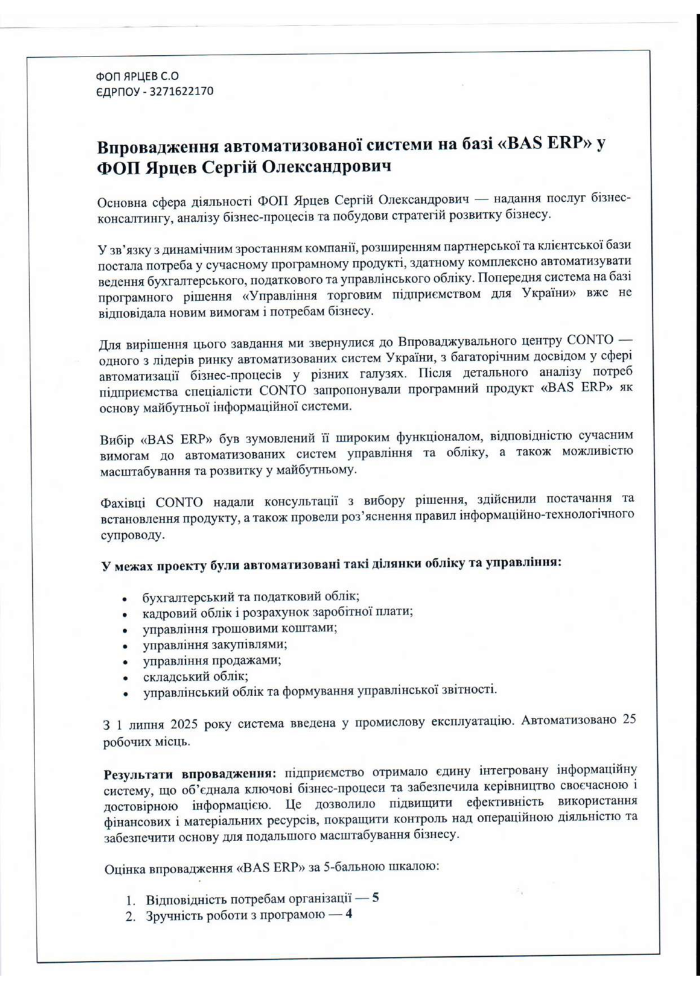 Вибір «BAS ERP» був зумовлений її широким функціоналом, відповідністю сучасним вимогам до автоматизованих систем управління та обліку, а також можливістю масштабування та розвитку у майбутньому.