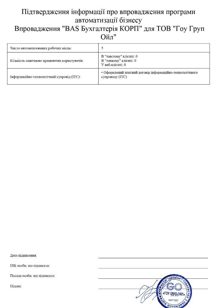 Впровадження "BAS Бухгалтерія КОРП" для ТОВ "Гоу Груп Ойл"